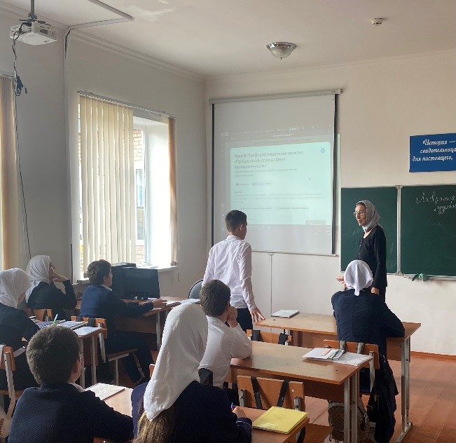 В формате профессиональной пробы учащиеся познакомились с новым портретом специалиста, посмотрели видеоролик о том, чем он занимается, и как выглядит его работа в реальной жизни.