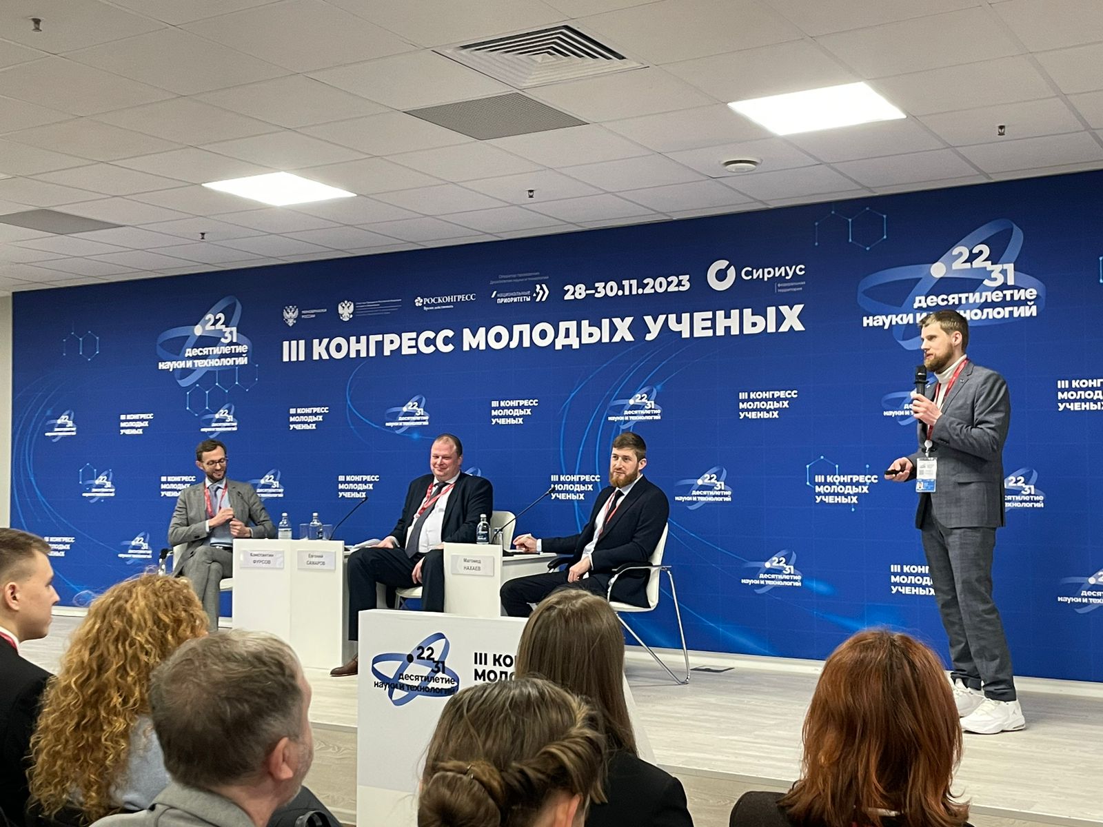 29.11.2023ПРОРЕКТОР ЧЕЧЕНСКОГО УНИВЕРСИТЕТА ВЫСТУПИЛ НА СЕССИИ ФЕДПРОЕКТ «ПОПУЛЯРИЗАЦИЯ НАУКИ И ТЕХНОЛОГИЙ»: НОВЫЙ ПОДХОДПо Указу Президента Российской Федерации с 2022 по 2031 год в России проходит Десятилетие науки и технологий, одна из ключевых задач которого – популяризация науки среди широкой аудитории. Многие научно-просветительские проекты появились в нашей стране благодаря инициативным и неравнодушным к науке людям. Для масштабирования этих проектов нужна существенная поддержка со стороны государства. Одним из эффективных инструментов такой поддержки являются гранты, которые впервые были запущены в 2023 году в рамках федерального проекта «Популяризация науки и технологий». На сессии подведем итоги проектов, получивших поддержку, а также с учетом обратной связи от сообщества представим изменения федерального проекта «Популяризация науки и технологий», которые будут действовать с 2024 года.Среди выступающих - представитель Чеченской Республики - Магомед Нахаев, Проректор по науке и инновациям, ФГБОУ ВО «Чеченский государственный университет им. А.А. Кадырова»Конгресс молодых ученых - ключевое мероприятие Десятилетия науки и технологий в России, объявленного Президентом Российской Федерации Владимиром Путиным в 2022 году. Конгресс объединяет представителей ведущих научных школ из разных регионов России, научных и образовательных организаций, органов власти, индустриальных партнеров, ярких лидеров отечественной науки, а главное – молодых ученых, победителей конкурсов грантов, студентов и школьников из России и других стран. Организаторами Конгресса молодых ученых в 2023 году выступают Фонд «Росконгресс», Министерство науки и высшего образования Российской Федерации и Координационный совет по делам молодежи в научной и образовательной сферах Совета при Президенте Российской Федерации по науке и образованию. Оператор Десятилетия науки и технологий — АНО «Национальные приоритеты».Подробная информация о III Конгрессе молодых ученых и программе мероприятий на сайте конгресс.наука.рф.