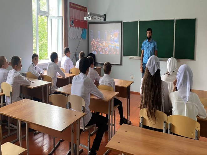 17 сентября в рамках «Неделя безопасности» в МБОУ «СОШ № 9 г. Ачхой-Мартан» состоялась встреча с участковым уполномоченным Исраиловым А.Ш. он провел профилактическую беседу о правилах безопасного поведения на дороге.