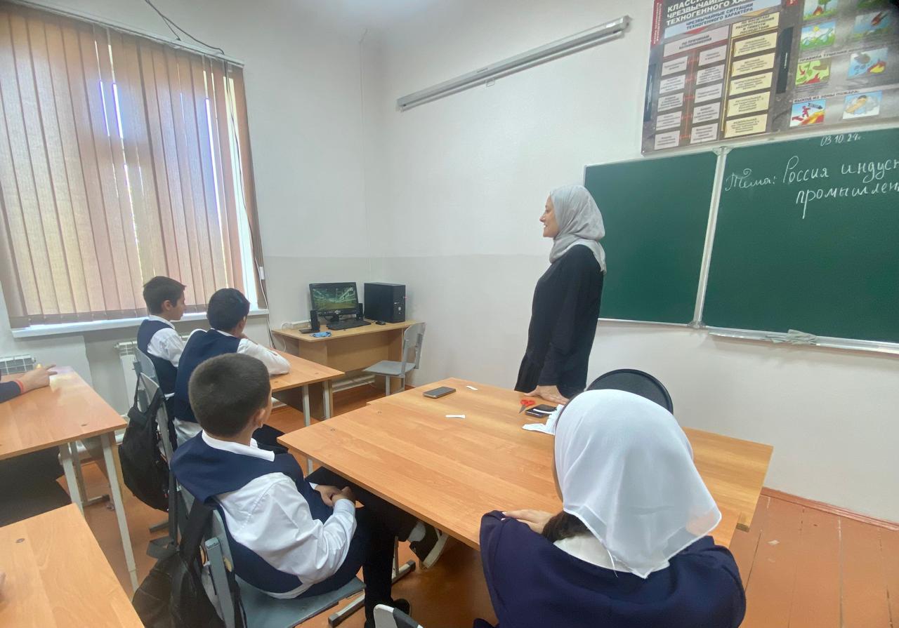 03.10.2024Сегодня, 3 октября 2024г. среди обучающихся МБОУ "СОШ № 9 г. Ачхой-Мартан" прошли очередные занятия в рамках профориентационного курса «Россия мои горизонты» прошел профориентационный урок «Россия индустриальная: атомная промышленность». На занятии ребята узнали, что такое индустриальная среда, какие отрасли к ней относятся и какую важнейшую роль она играет в экономике и развитии нашей страны.
