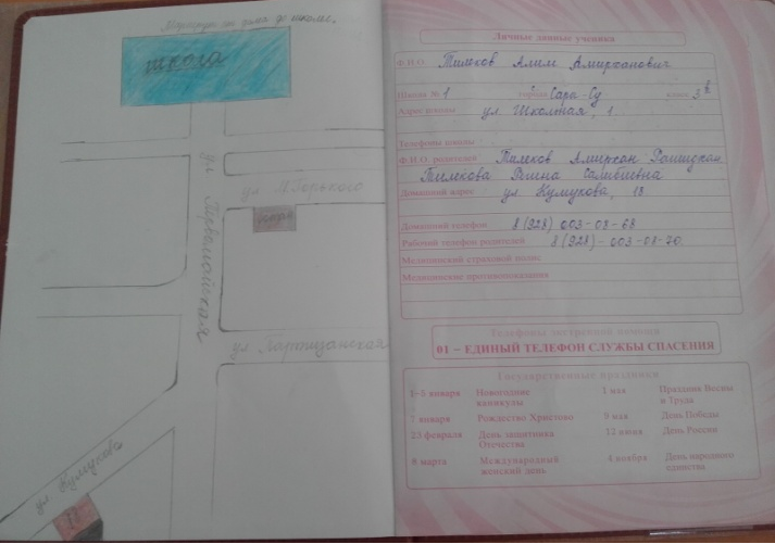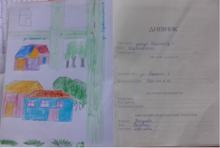 В дневниках обучающихся 1-4 классов размещены схемы безопасного маршрута «дом-школа-дом».