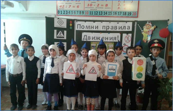 Проведены классные часы «Знай, соблюдай, выполняй», «Светофор, нам помоги!» и другие. В начальном звене проведено общее мероприятие под названием «Помни правила движения!». В игровой форме дети вспомнили о правилах движения и поведения на дорогах. Были разыграны мини-сценки, весело и задорно исполнили частушки. Как в реальной жизни, были и ГИБДДшники, роль которой хотел исполнить каждый мальчик.