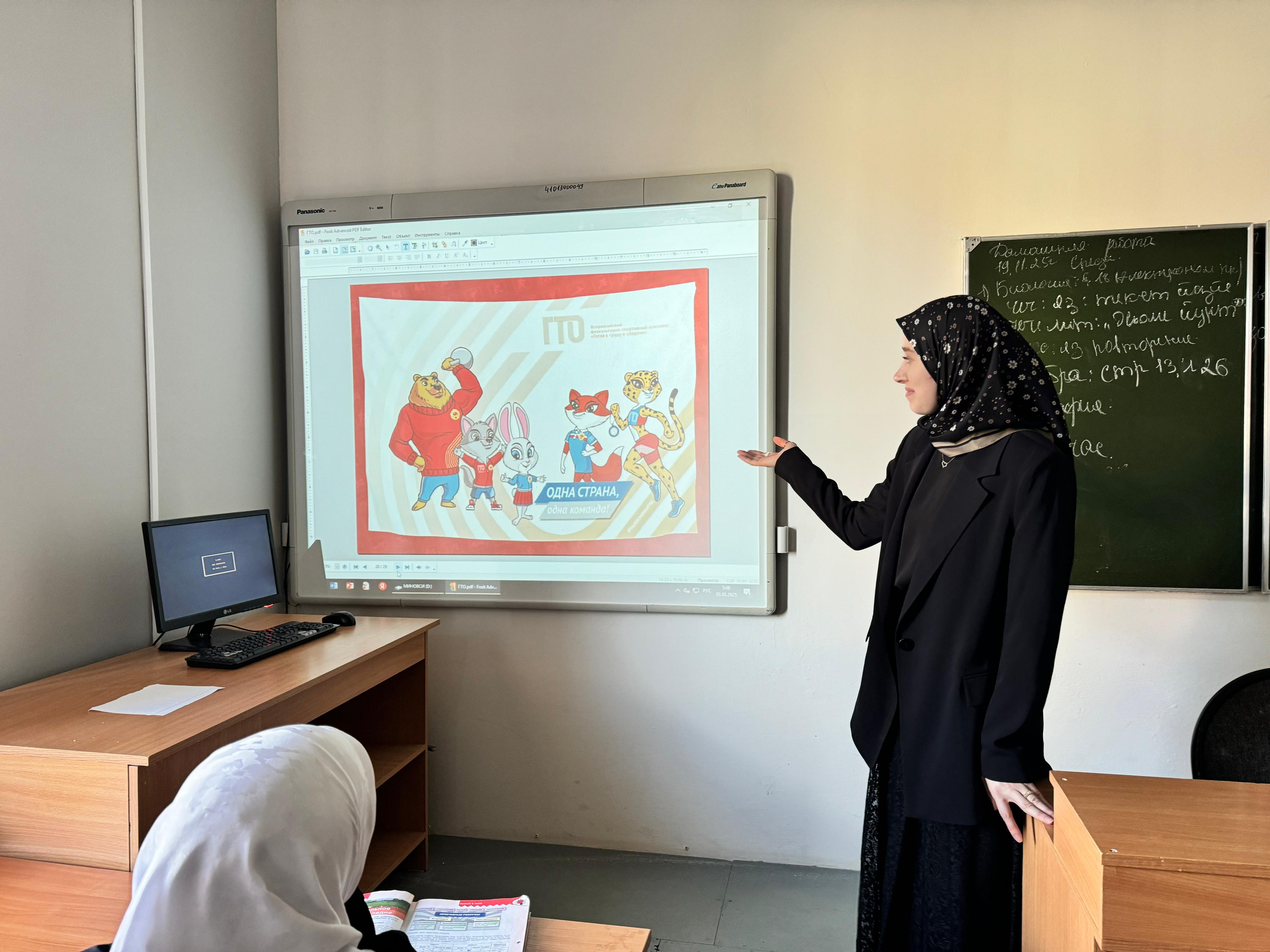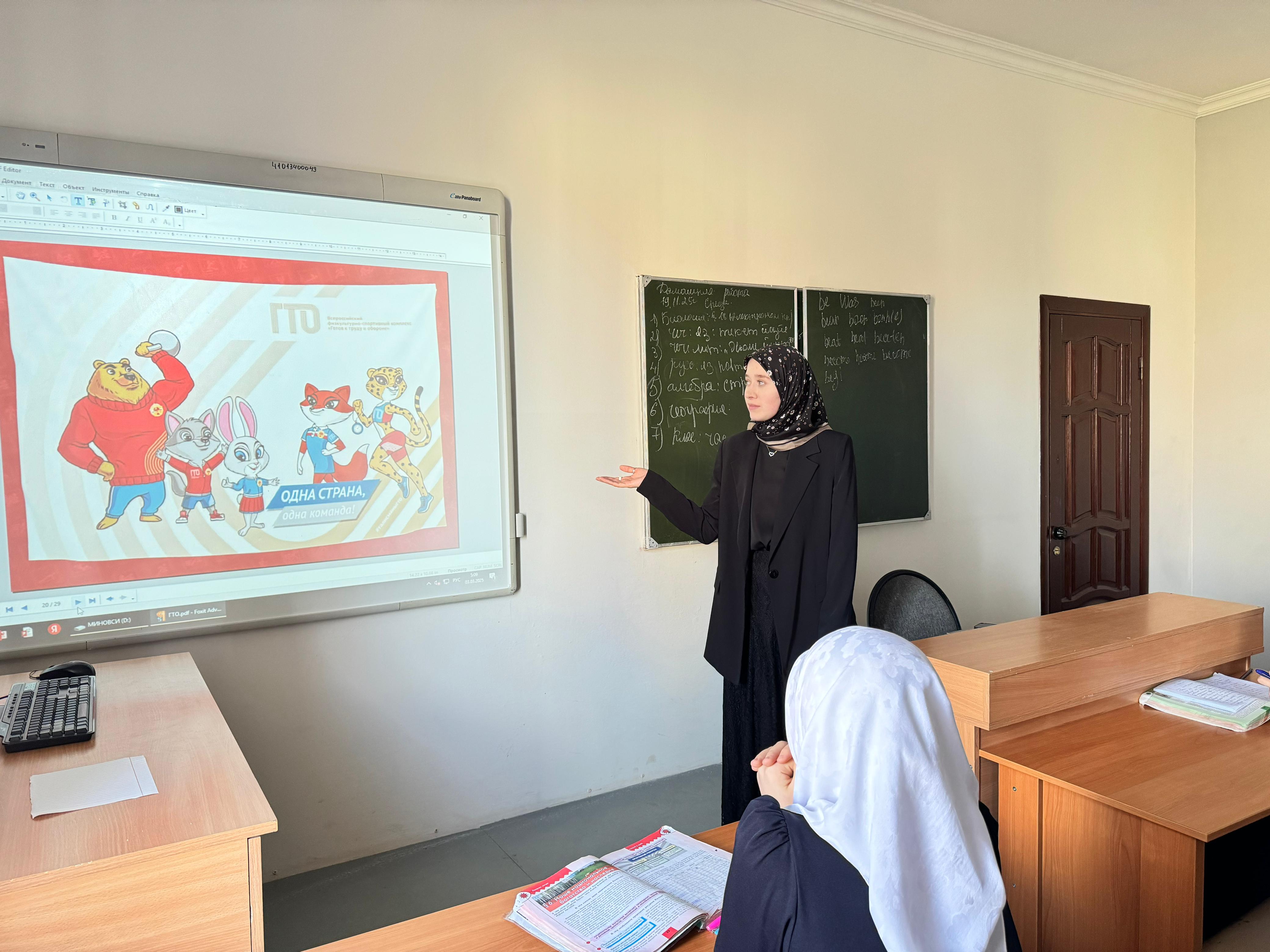 17.11.2025В МБОУ "СОШ№9 г.Ачхой-Мартан" прошла акция «Урок ГТО» В соответствии с планом мероприятий, направленных на пропаганду Всероссийского физкультурно - спортивного комплекса «Готов к труду и обороне» 17 ноября 2025 года в нашей школе прошла акция «Урок ГТО", в которой приняли участие 27 обучающихся. Цель акции – мотивация детей и подростков к физической активности и приобщению к здоровому образу жизни, систематическим занятиям физической культурой и спортом, популяризация Всероссийского физкультурно-спортивного комплекса «Готов к труду и обороне». В ходе работы с презентацией ребята познакомились с историей, становлению и развитию комплекса ГТО в нашей стране, нормативами выполнения физкультурно - спортивного комплекса «Готов к труду и обороне». Они узнали, что комплекс «ГТО» предназначен для повышения уровня физической подготовленности, самосовершенствования и поддержания здорового образа жизни. В заключении были сделаны выводы, для чего нужно стремиться молодежи 21 века к выполнению нормативов ГТО, к получению знаков отличия.