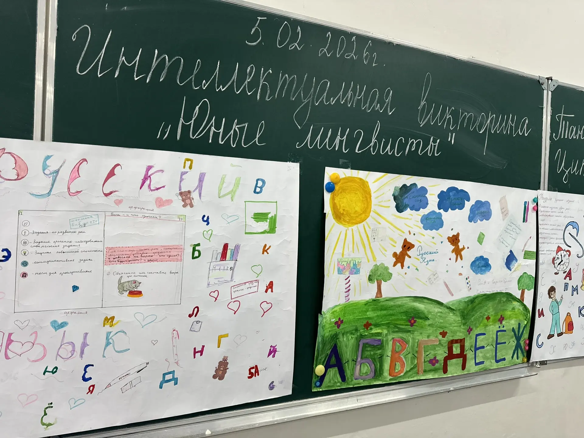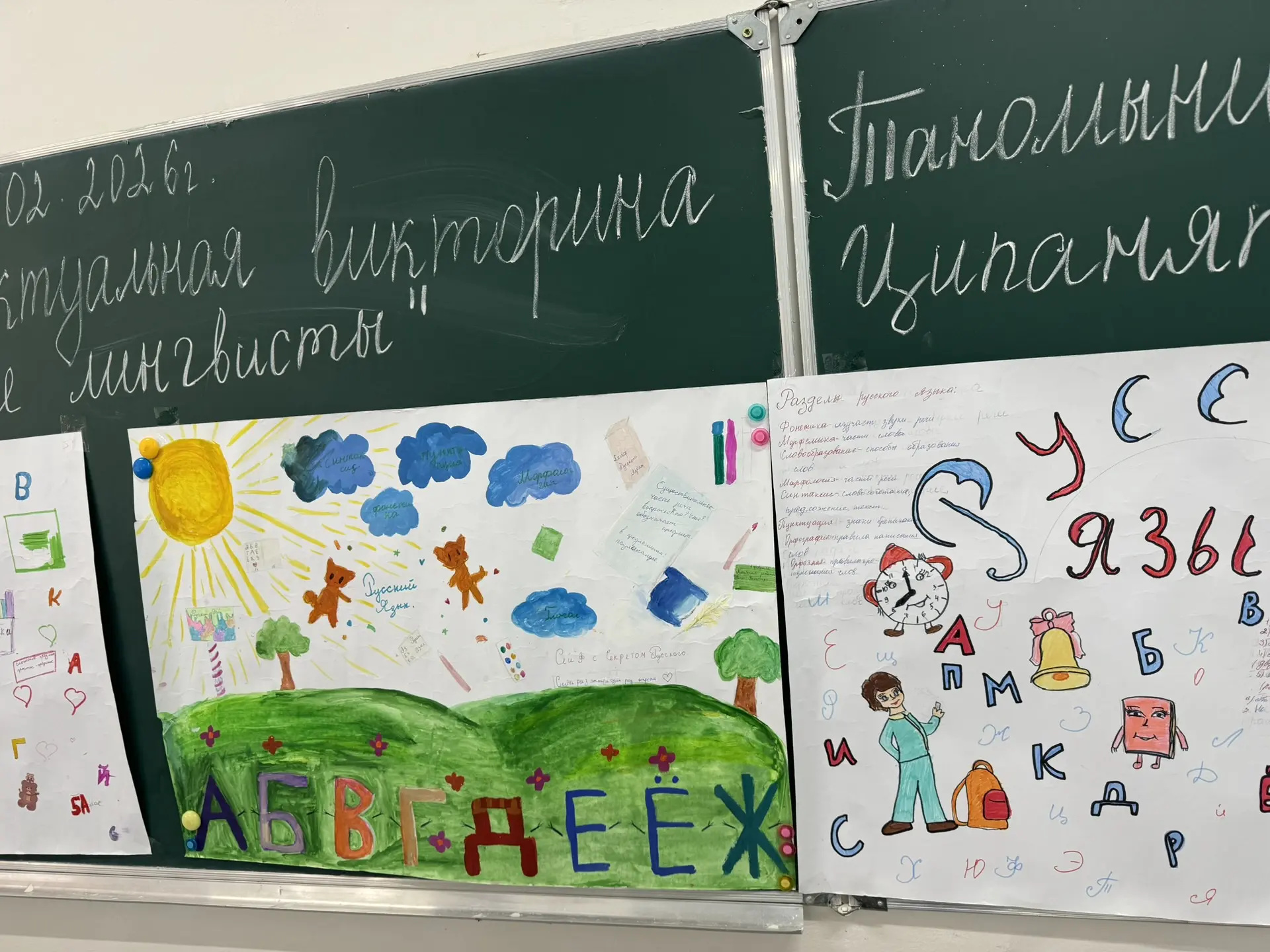 На викторине было представлено 7 конкурсов, такие как: «Разминка», «Фонетика», «Угадай слова», «Скороговорки», «Сдам ОГЭ», «Морфемика и словообразование» и «Синтаксис».